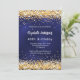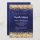 Eine moderne, stilvolle und glamouröse Einladung für eine 40. Geburtstagsfeier (oder jedes Alter). Ein marineblauer Hintergrund, mit Imitaten verziert mit goldenen Konfetti. Die blaue Farbe ist ungleichmäßig. Personalisieren Sie Ihren Namen und Ihre Party-Daten und fügen Sie diese hinzu.