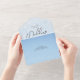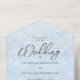 Erleben Sie die Eleganz und den Zauber eines Winterwunderlandes mit dieser eisblauen Hochzeitsfeier. Der blaue Gradientenhintergrund mit weißen Schneeflocken und die Bequemlichkeit eines All-in-One-Designs schaffen eine atemberaubende Einladungspauschale, die die Bühne für Ihre Winterhochzeit Set.