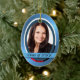 Auf einer Seite dieses Sake-Ornaments befindet sich Ihr Graduiertenfoto, gerahmt in einem schönen, blau-metallisch aussehenden Hintergrund, der die meisten Portraits ergänzt. Ein blaues Banner am unteren Rand hält Ihren leicht angepassten Text. Die andere Seite ist passend hellblau. Wenn Sie Text hinzufügen möchten, können Sie dies durch "Anpassen" tun. **Bitte beachten Sie — das Bild wird auf der Oberfläche gedruckt und das Produkt enthält keine Metall- oder Metallsubstanz.**