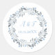 Fügen Sie Ihre Monogramm-Initialen und Ihr Hochzeitstermin zu diesen hübschen blauen und grauen Blumenkränzen rund oder quadratisch Aufkleber. Ideal für Liebhaber und Umschlag Aufkleber.