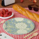 Blütendruck geblockt in sanften Blau-, Grün- und Cremetönen.