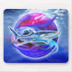 Farbenfrohe Hai-Design mit einem Blue Shark in einem abstrakten Kreis-Design.