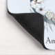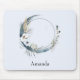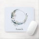 Mousepad mit einer mystischen Abbildung. Ein dunkelblauer Halbmond mit einer eleganten, dünnen Kontur und weißer Blume blüht an seinen Kanten.