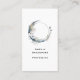 Visitenkarte mit einer mystischen Abbildung. Ein dunkelblauer Halbmond mit einer eleganten, dünnen Kontur und weißer Blume blüht an seinen Kanten.