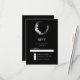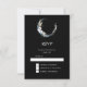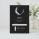 RSVP-Karte mit einer mystischen Abbildung. Ein dunkelblauer Halbmond mit einer eleganten, dünnen Kontur und weißer Blume blüht an seinen Kanten.