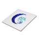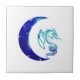 ein dekoratives Design eines Halbmonds mit Drache oder Eidechse im Tätowierstil, das in surreal blauen Farben auf einer Keramik tanzt.
