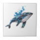 traditionelle Aquarellkunst eines großen, blauen Buckelwals, der auf einer Keramik schwimmt