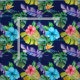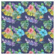 Ein wunderschönes, farbenprächtiges tropisches Muster aus blauem Hibiskus, rosa Hibiskus Blume und farbenfrohen Farnfronten und anderen tropischen Pflanze aus Hawaii. Alle Pflanze sind auf dunkelblauem Hintergrund. Dieses hübsche tropische Gewebe würde in jedem handwerklichen Projekt gut aussehen, einschließlich Vorhänge, Kissen, Kleidung und Nähprojekte, und vieles mehr.