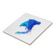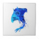 ein dekoratives Kunstwerk eines eleganten Stechrochen oder Manatrochen mit surrealblauem Wasserfarbe auf der Silhouette auf einer Keramik.