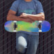 Blauer Himmel und goldgelbe Blitze Skateboard