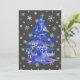 wir wünschen Ihnen ein glückliches neues Jahr mit Schneeflocken, weißem Muster und einem blauen Aquarellbaum