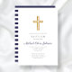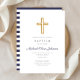 Personalisierte Navy Blue Script religiöse Cross Boy Taufe Einladung.