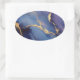 Blauer Hintergrund mit goldenen Streifen und Punkt Ovaler Aufkleber