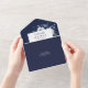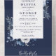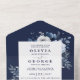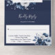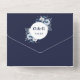 Diese einladende Hochzeitsinklusive besticht durch elegante blau-weiße Blume mit moderner Typografie. Die Einladung enthält eine perforierte RSVP-Karte, die individuell adressiert oder links werden kann, damit Sie die Adressdaten Ihres Gastes handschreiben können. Entwickelt von Thisisnotme©