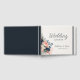 Das ist ein eleganter marineblauer und blütenblauer Hochzeitsgast Signing book mit blau und rosa rosenfarbenen Blume auf einem hellblütigen Hintergrund. Es ist perfekt für eine romantische Hochzeitsfeier.