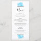 Dieses Design besticht durch elegante, blaue Blume. Die schönen blauen Blume des Bouquets sind auf einer eleganten schwarzen Linie angeordnet. Ein schlichtes, elegantes Aquarellbild von Blume, die über und unter der Formulierung angeordnet sind, mit einer Blume, die die Namen der Braut und des Bräutigams miteinander verbindet. Der elegante Skripttext, der für den Namen der Braut und des Bräutigams verwendet wird, wird mit einem einfachen Schriftart kombiniert. Dieses Design ist ideal für jedes Hochzeitsthema. Die perfekte Menükarte für alle Jahreszeiten. Auch die passenden Hochzeitseinladungen und andere Schreibwaren sind verfügbar.