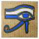 Keramik Kachel mit dem ägyptischen Symbol, das Horus Auge auf Hieroglyphen. Das Horus Eye ist in blauen, gelben und schwarzen Konturen auf Hieroglyphen-Hintergrund gestaltet.