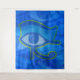 Tapestry mit Auge des Horus texturierte blau mit goldenem Kontur abstraktes Design. Das Horusauge ist in blauen Tönen auf verblassten Horusaugen im Hintergrund zu sehen.