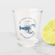Personalisierte Blue Lobster Shot Glas Souvenirs für Ihr nächstes Hummer Bake Party oder Meeresfrüchte-Event. Es zeigt eine Aquarellmalerei mit einer blauen Hummer-Darstellung. Umgeben sind dies Orte für Ihre einzigartigen Veranstaltungsinformationen.