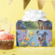Blauer Hund Frühlingsblumen Malerei Geschenkpapier