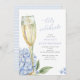 Dieses schöne Design besticht durch blauen Hydrangea-Blüten, ein goldenes Champagnerglas und Ihren eigenen Text. Fügen Sie Ihre Informationen mithilfe des Vorlagenformulars hinzu.