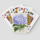Große Spielkarten für Pokernacht oder irgendeine Nacht. Er kennzeichnet einen weg weißen Hintergrund mit einem blauen Hydrangea auf ihm. Sie fertigen den Text an der Unterseite besonders an.