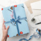 Personalisiertes blaues Teddy Bärenpackpapier für Babydusche oder 1. Geburtstag Party. Elegantes Verpackungspapierdesign mit dem Namen Kind und süße Tier Cartoon mit rotem Ballon. Anpassbare Hintergrundfarbe dh. hellpastellrosa für kleine Mädchen, blau oder neutral gelb. Niedliches Teddybärmuster für Neugeborene / Eltern (Mama und Papa). Preppy chic Design. Machen Sie Ihre eigene Feier Geschenkpackung für Enkel / Enkelin / Enkelkind. Adorable Kinder Illustration mit anpassbarer Altersnummer in Ballon.