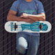 Diese Skateboardplattform von Strangeco kennzeichnet den blauen Jungen durch unhöfliches Reuben