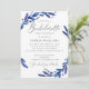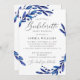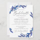 Eleganter Script Junggeselinnen-Abschied Wochenende Einladung mit blauen Marineblockaden botanische Elemente.