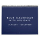 Es ist 12 Monate (Januar - Dezember) Blauer Kalender mit Feiertagen (Veranstaltungen und Feiertage der Staaten), blauer Draht und anpassbarer Text auf der Titelseite.