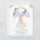 Blauer Karierter Bunny Rabbit Taufe Einladung Sweet Bunny Thema Taufen Einladung für einen kleinen Jungen mit einer niedlichen flauschigen Hasen- oder Hasen-Illustration, verschiedenen Baby-blauen Blumenarrangements, blaues kariertes Muster und ein weißes Kreuz. Dieses Design ist ideal für jemanden, der ein kleines Jungenhasen oder eine sonnige Taufveranstaltung sucht.