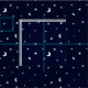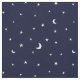 Ein minimaler Entwurf, der ein Muster der kleinen weißen sichelförmigen Monde und der Sterne auf einem blauen Mitternachtshintergrund kennzeichnet.