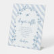 Blauer, eleganter Wasserfarbenschmetterling mit blumengeschmücktem Bohnachtsbaby Dusche Windel Windelpreisschild.
