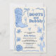 Blauer Kniebeutel sticht blubbly Brautparty Einladung