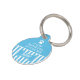 Ein Identifikations-Umbau für Hunde in der blauen Farbe, einen Knochen mit dem Hundenamen und einen Tatzendruck mit Kontaktdetails für den Eigentümer zeigend.