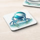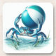 Dieser harte Kunststoff-Untersetzer wird mit einer niedlichen blauen Krabbe mit Beachball-Kunstdruck gezeigt. Lizenziertes Bild