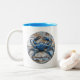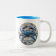 Diese Tasse wird mit einem blauen Krebsdruck gezeigt. Passen Sie diese Tasse an oder kaufen Sie sie wie geplant. Lizenziertes Bild