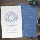 Blauer Kreis von Blätter monogramm Hochzeitsgast-Informationsblatt. Schöne Broschüre für Hochzeiten ideal, um Ihren Gast zu verstehen, wie Sie Ihre Hochzeitsdestination erreichen und sehen Sie den Zeitplan, Unterkunft Informationen und Social Media Hashtag Details des Hochzeitstages. Personalisieren Sie Ihre persönlichen Daten. Weitere passende Artikel sind ebenfalls verfügbar. Wenn Sie Hilfe benötigen, kontaktieren Sie mich bitte. © Original art and design by Sarah Trett exklusiv für www.mylittleedenweddings.com