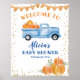 Blauer Kürbisrucker Baby Dusche Begrüßungszeichen Poster