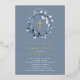 Schöne Gold Foil First Communion Einladungen mit einem weichen blauen Blattkranz und kreuzem Set auf blauem Hintergrund. Dreh unsere Einladung, um einen koordinierenden Rücken für eine besondere Touch zu sehen. Besuchen Sie unseren Shop und sehen Sie sich unsere gesamte Blattsammlung an.