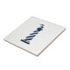 Blaue Leuchtturmschablone auf weißer Keramikfliese. Perfekter Dekor für jedes See- oder Küstenbadezimmer, Küche. Für jeder, das die Lieben Küsten-, nautisch, Hamptons, Neu-England und Nantucket anreden.