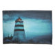 Blauer Leuchtturm nachts bei Regen Kissenbezug