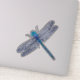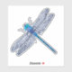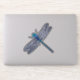 Eine blaue Libelle auf einem durchsichtigen Stock.