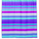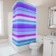 Blaue lila Farbe kreative gestreifte Duschvorhänge Design. Das Badezimmer ist mit lila, blauen Streifen in der Farbpalette gestaltet. Einzigartige, kreativ blau gestreifte Duschdekoration.