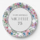Blauer, lila und rosa Aquarell, florale 75. Geburtstagsfeier Teller für Frauen. Text und Schriftart sind vollständig anpassbar, wenn Sie Zazzles Designwerkzeug verwenden, sodass diese Teller für jedes Alter personalisiert werden können. Kontaktieren Sie uns für Hilfe bei der Anpassung oder der Anpassung von Produkten.