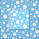 Ein Muster von weißen Flecken verschiedener Größen auf einem blass blauen Hintergrund.