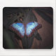 Blauer Morpho-Schmetterling auf Blatt.