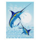 Realistische Illustration eines schönen Marlins, eines Ozeantieres, das aus dem Ozean springt. Vektorgrafik Copyright BluedarkArt TheChameleonArt.