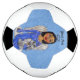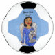 Dieser Fußball hat einen Engel in einem blauen Kleid mit weißen Sternen und hellblauen Augen, die auf einer weißen Wolke sitzen und ihre Katze mit ihrem weißen Engel auf einem hellblauen Hintergrund halten. Passen Sie Ihren Text mit der Vorlage an.
