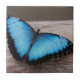 Hübscher blauer morpho Schmetterling auf einem Zaun.